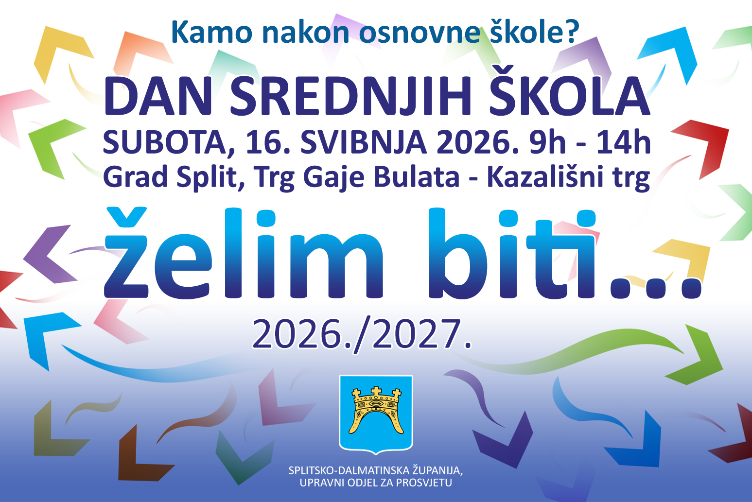 Splitsko dalmatinska županija – Upravni odjel za prosvjetu i ove godine organizira manifestaciju “Dan srednjih škola Splitsko dalmatinske županije”.