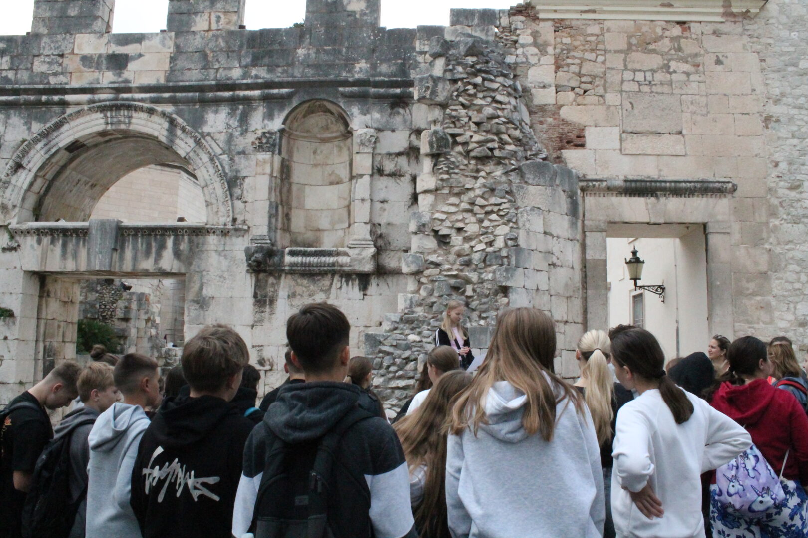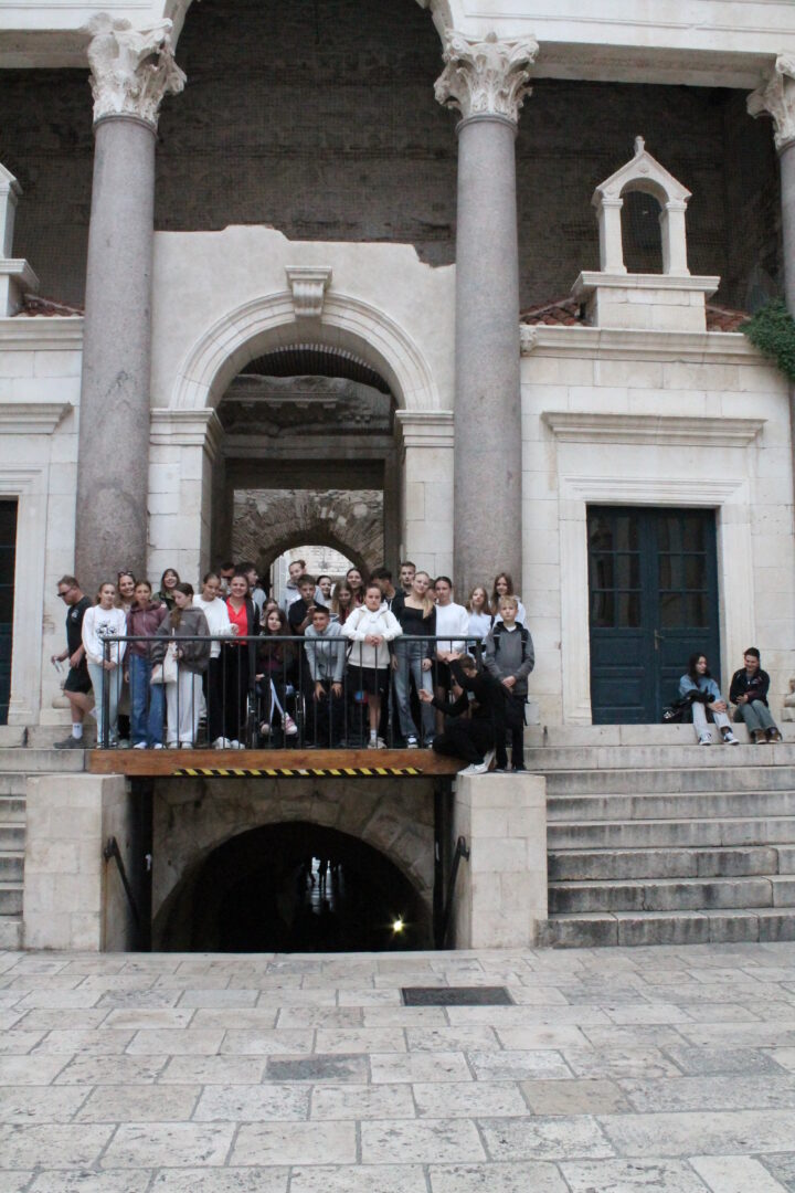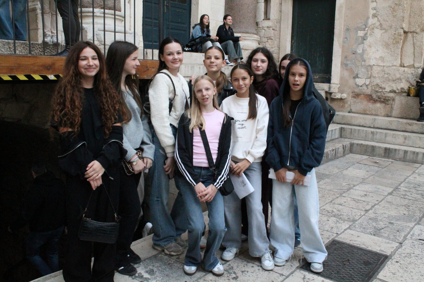 Naši su učenici pripremili kratka predstavljanja na engleskom jeziku o najpoznatijim splitskim znamenitostima. Poseban trenutak izleta dogodio se u veličanstvenom Vestibulu Dioklecijanove palače, gdje je školska knjižničarka Marina Brajović zapjevala Ave Mariju. Njezin prekrasan glas ispunio je prostor i oduševio sve prisutne – prolaznike, učenike i njihove učitelje. Emotivna izvedba stvorila je čarobnu atmosferu koju će svi sudionici dugo pamtiti.