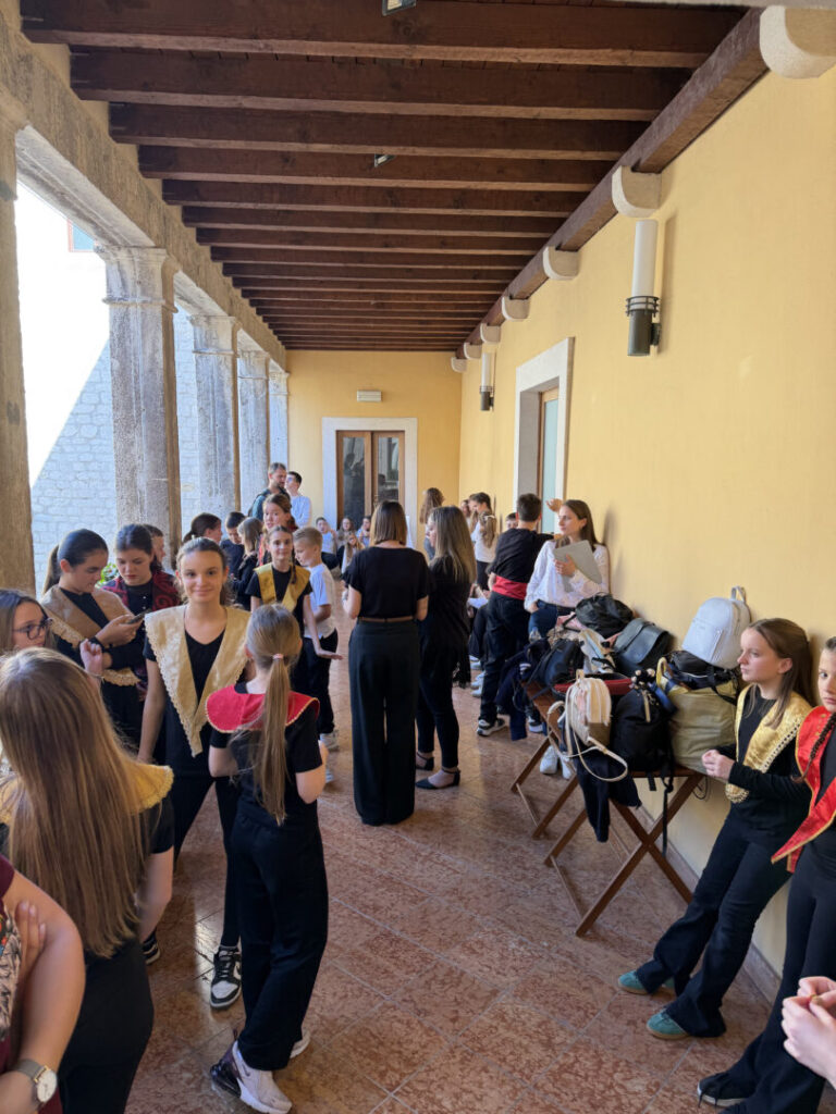 Djeca su se predstavila pažljivo odabranim i primjerenim repertoarom, pokazujući muzikalnost, scensku sigurnost i zajedništvo koje je prožimalo cijeli događaj. Nastupi su protekli u vedrom, poticajnom i svečarskom ozračju, a publika je s velikim zanimanjem i toplinom pratila svaku izvedbu. Posebnu vrijednost koncertu dao je povijesni prostor dvorca Vitturi, koji je svojom ljepotom i dostojanstvom dodatno naglasio umjetnički doživljaj i svečanost ovakvog kulturnog susreta.