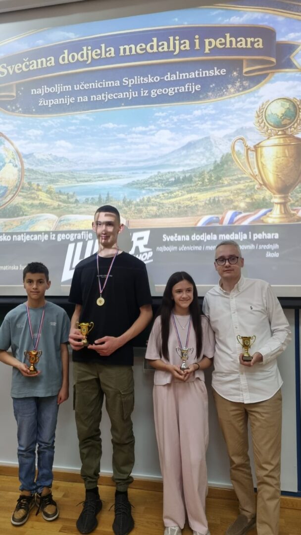 Veliko priznanje pripalo je i mentoru Anti Cvitkoviću koji je tom prigodom preuzeo pehare namijenjene školi. Oni će zauzeti posebno mjesto u školskim vitrinama kao trajni podsjetnik na izvrsnost, predan rad i izvanredne uspjehe ostvarene tijekom školske godine 2025./2026.