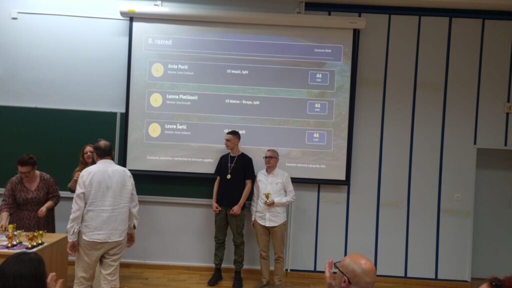 U subotu 18. travnja na Fakultet elektrotehnike, strojarstva i brodogradnje u Splitu održana je prva organizirana svečana dodjela nagrada najuspješnijim učenicima i mentorima iz geografije u Splitsko dalmatinskoj županiji. Događaj je protekao u svečanom i ponosnom ozračju, a program je vodio Antonio Vrbatović, nastavnik geografije iz III. gimnazije Split, koji je svojim pristupom dodatno pridonio svečanoj atmosferi.